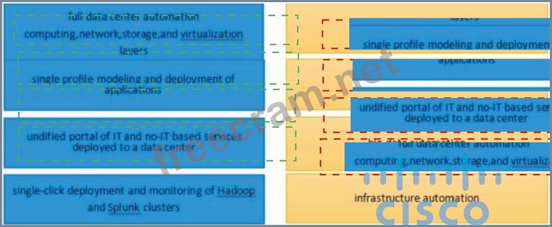 Drag and drop the enlisted four offers from the left onto the correct Cisco ONE Enterprise Cloud Suite on the right.