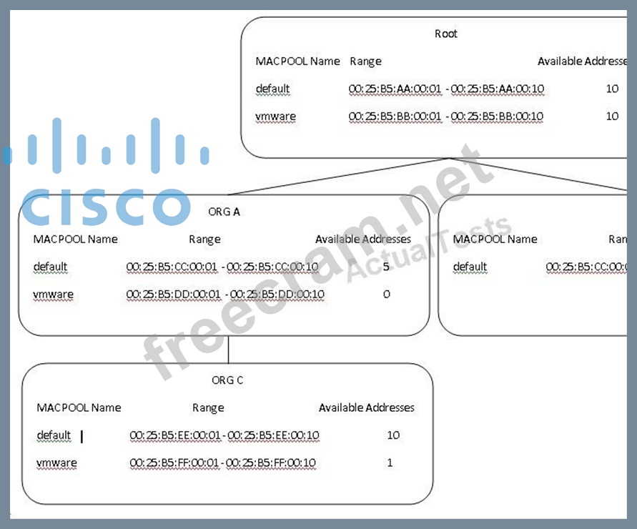 You create a service profile within ORG C with two vNICs. Each vNIC is assigned to the MAC pool named