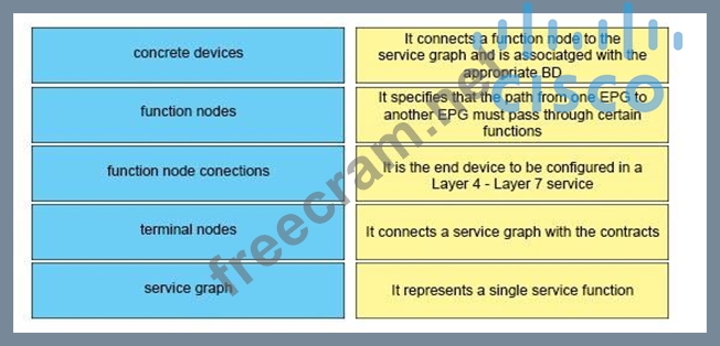 Drag and drop component of policy drive Layer 4 - Layer 7 services in an ACI environment from the left onto the correct definitions on the right.