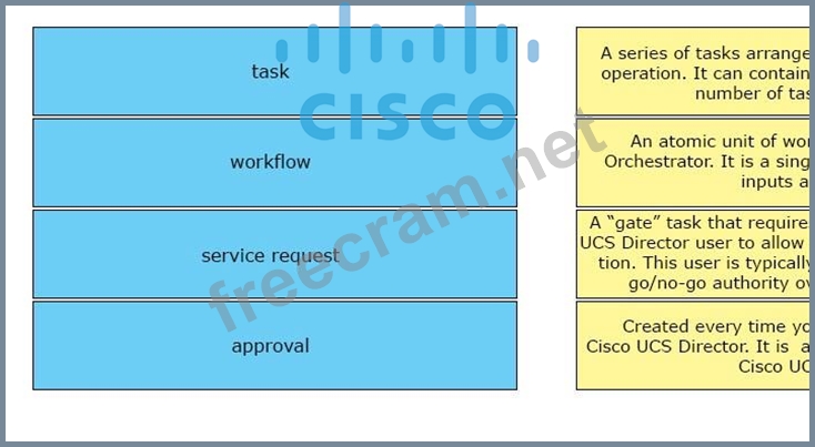 Drag and drop the concept of Cisco UCS Director orchestrator from the left onto the correct description on the right.