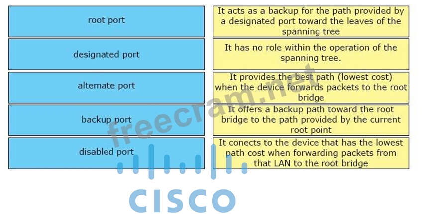 Question 32: DRAG DROP Drag and drop the spanning-tree port from the left...