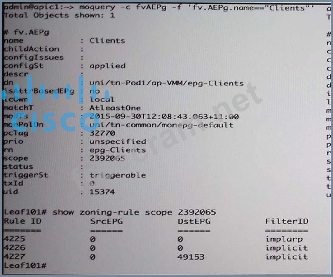 Question 104: (Exhibit) Refer to the exhibit. A virtual machine in the EPG...