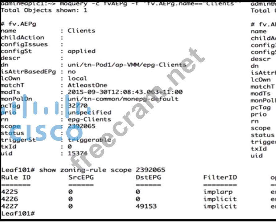Question 59: (Exhibit) Refer to the exhibit. A virtual machine in the EPG...