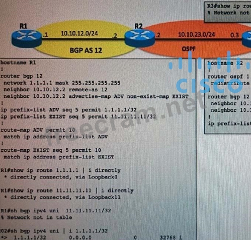 Question 81: Refer to the exhibit. Why is R3 unable to install 1.1.1.1/32...