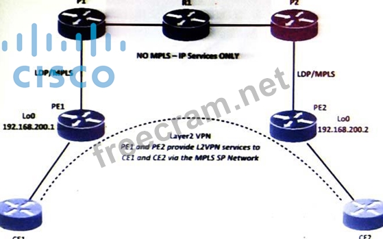 Refer to exhibit. PE1 and PE2 has a Layer 2 VPN over a GRE tunnel. The GRE tunnel built between P1 and P2 has LDP enabled. Consider a packet capture of the packets from CE1 and CE2 at P1 and R1 link.
