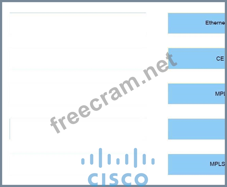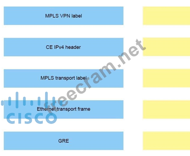 Drag and drop the headers on the left onto the correct order of the encapsulation on the right, starting from the inner header (at the top) to the outer header (at the bottom).