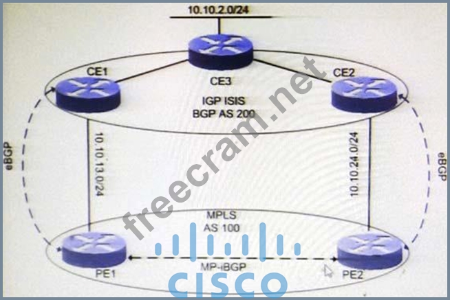 Question 55: (Exhibit) Refer to the exhibit. All PE routers are configure...