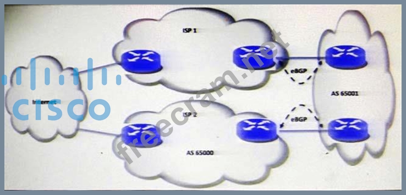 Refer to the exhibit. A network engineer from ISP 2 is designing the BGP architecture with a requirement of preventing their customer AS 65001 from becoming a Transit AS, using the following configuration: