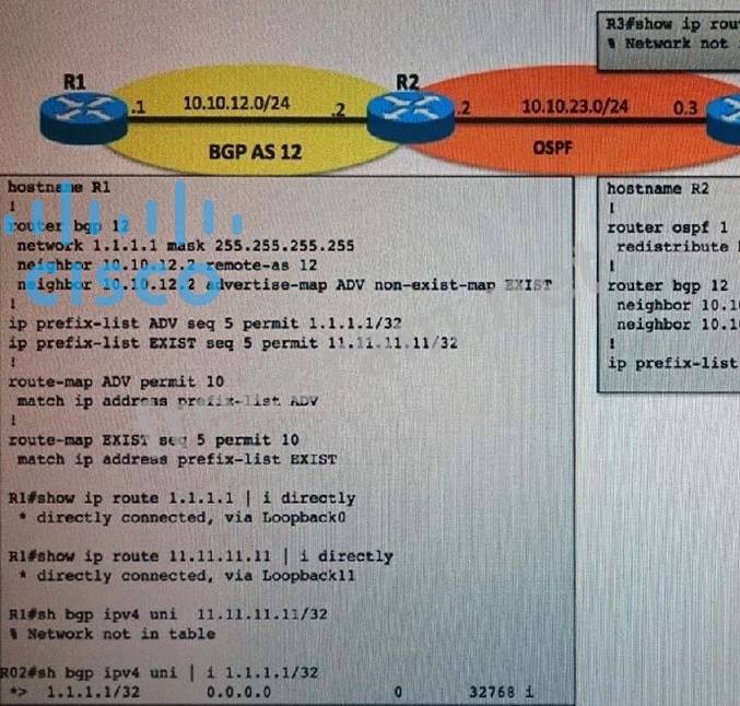 Question 26: Refer to the exhibit. Why is R3 unable to install 1.1.1.1/32...