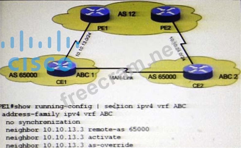 Question 59: (Exhibit) Refer to the exhibit. All PE routers are configure...