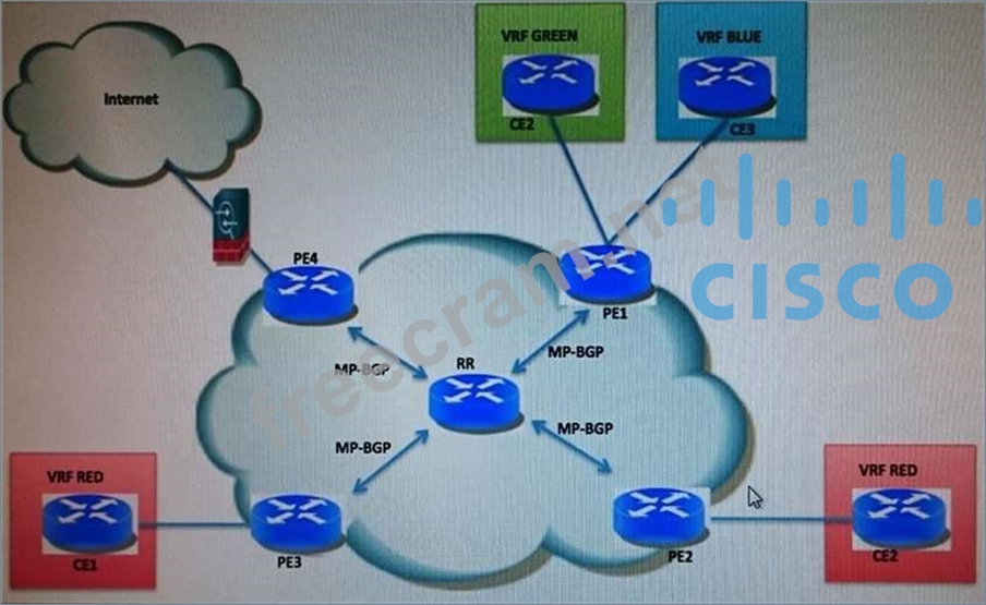 Question 59: (Exhibit) Refer to the exhibit. All PE routers are configure...