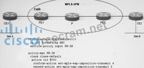 Refer to the exhibit. An MPLS Layer 3 VPN service has been provisioning for a customer. Which will be the ToS value at Site B for the exceeded traffic that is sent form Site A with ToS 2?