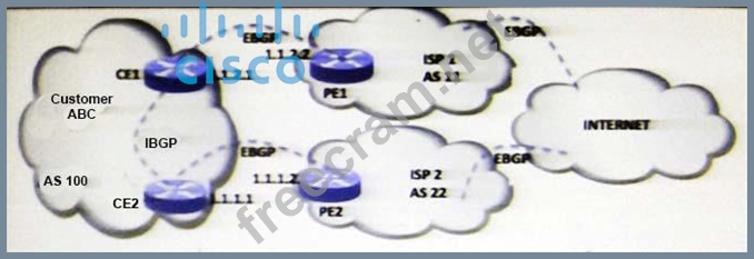 Question 22: (Exhibit) Refer to the exhibit. Customer ABC is peering with...