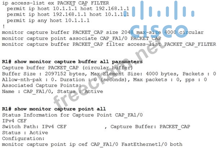 Refer to the exhibit. Ping is successful from R1 with source IP 10.1.1.1 to the destination 192.168.1.1. It is routed via the Fast Ethernet 1/0 interface. It is noticed that the ICMP echo request packets are not logged to the captured file. Which issue is possible?