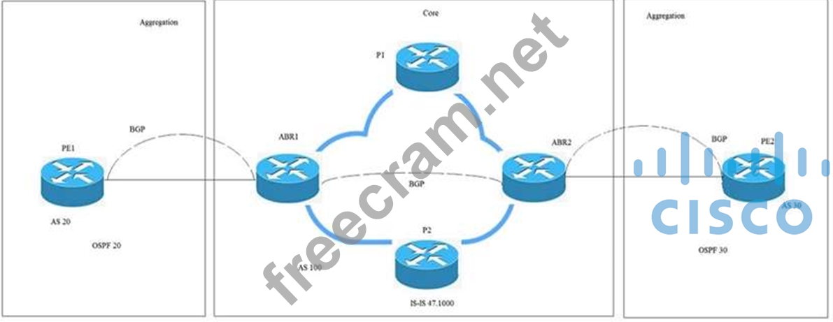 Question 44: (Exhibit) Refer to the exhibit. The PE devices are Cisco ASR...