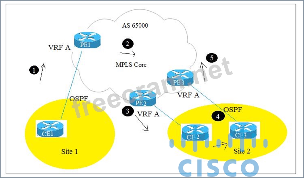 Question 25: OSPF is enabled on PE-to-CE links. To ensure that OSPF route...