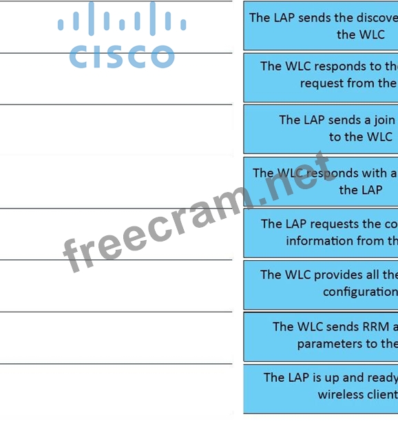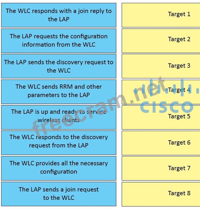 Drag and drop the CAPWAP events on the left into the order in which they occur on the right during the WLC discovery and join processes.