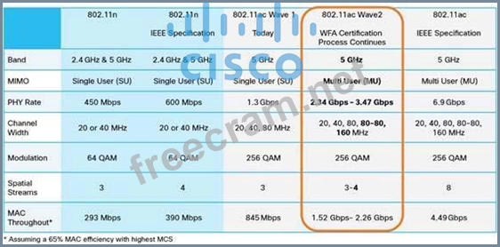 Question 65: Which three statements about 802.11ac are true? (Choose thre...