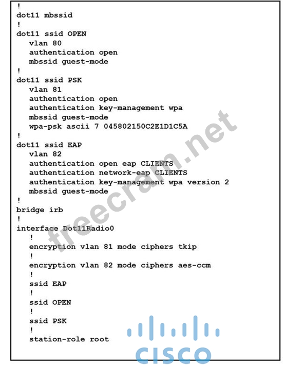 Question 71: (Exhibit) Refer to the exhibit. It belongs to a Cisco IOS AP...
