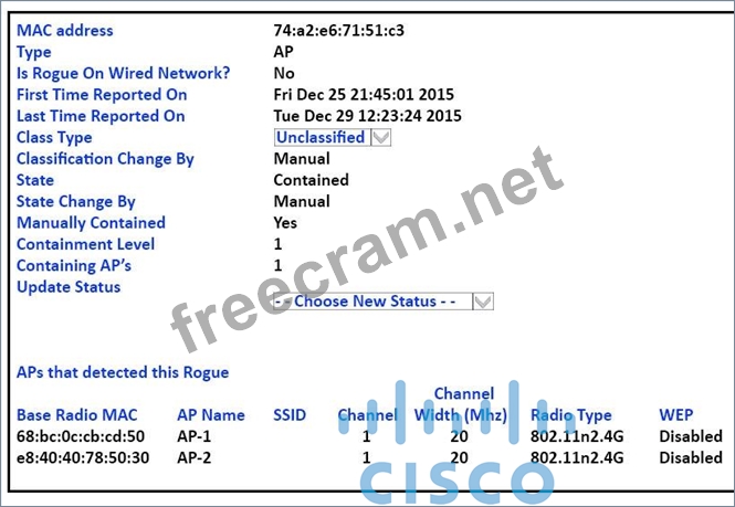 Refer to the exhibit. Which statement about the rogue access point screenshot is true?