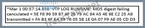 Refer to the exhibit. You have been asked to troubleshoot why VTP is not distributing new VLANs to a VTP client switch. Which option is the most likely root cause of this VTP problem?