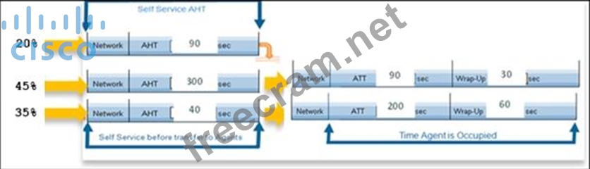 Which includes three inbound call flows with their respective average handle times. The deployment includes Cisco Unified Contact Center Enterprise, Cisco Unified Customer Voice Portal, Cisco Unified Communication Manager, and Cisco Unified Border Element. The customer needs to record all agent conversations with callers. What is the minimum average handle time needed to determine how many recording ports are required?