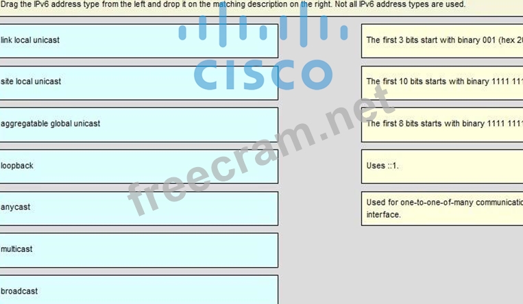 Question 4: DRAG DROP Drag the IPv6 address type from the left and drop ...
