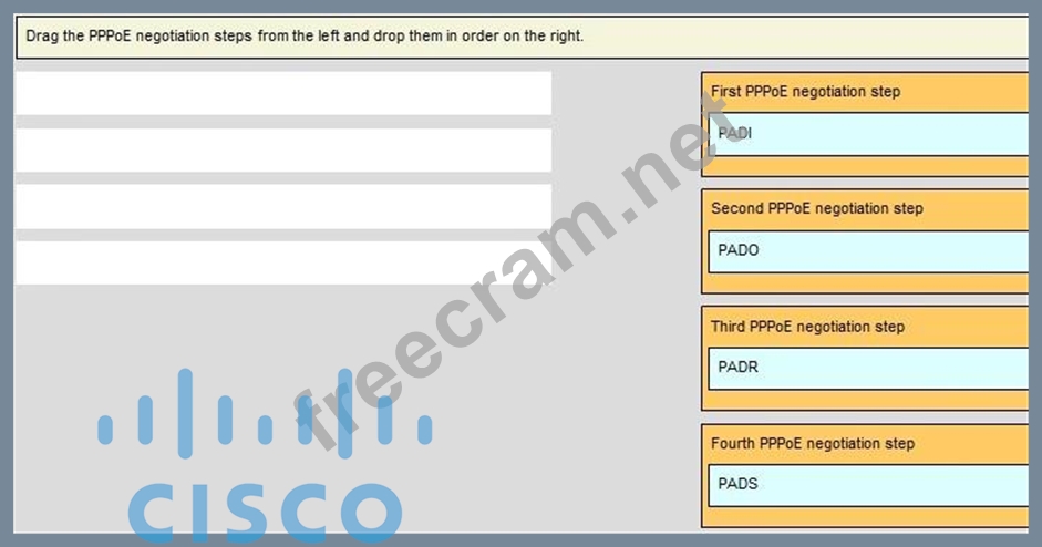 Question 61: DRAG DROP Drag the PPPoE negotiation steps from the left and...
