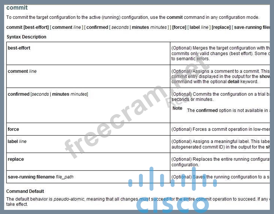 Question 5: On Cisco IOS XR software, what is the default commit option?...