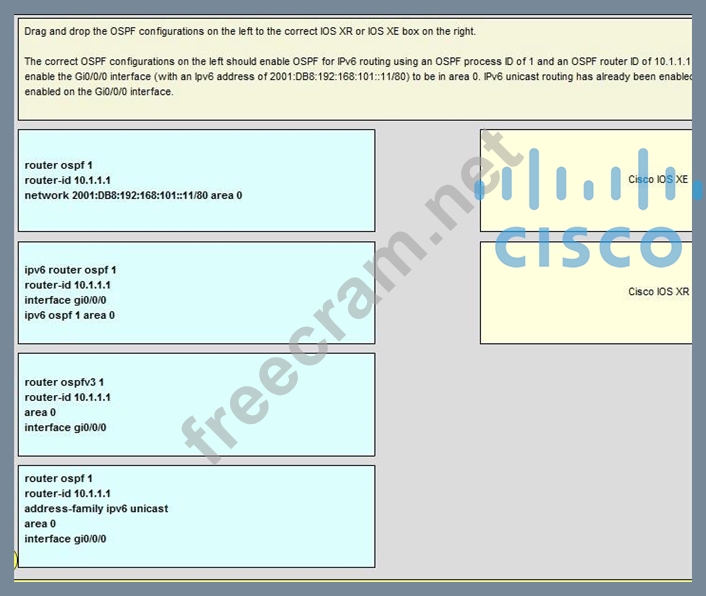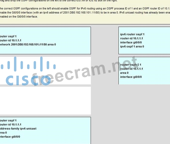 Question 68: On Cisco IOS XR software, which set of commands enables OSPF...