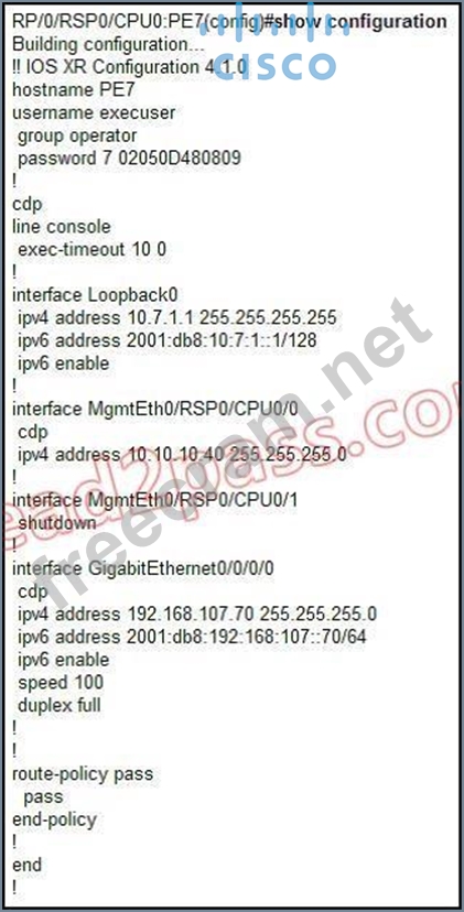 Question 32: Refer to the Cisco IOS XR configuration exhibit. Which state...