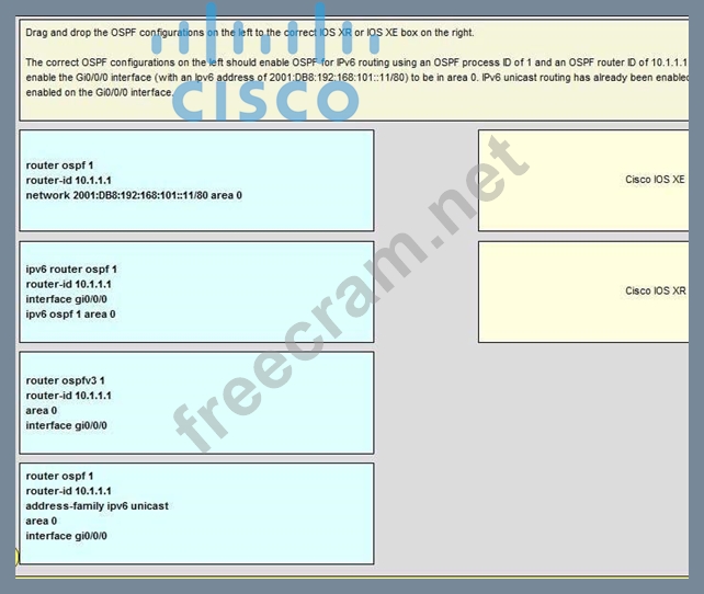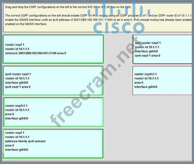 Question 83: On Cisco IOS XR software, which set of commands enables OSPF...