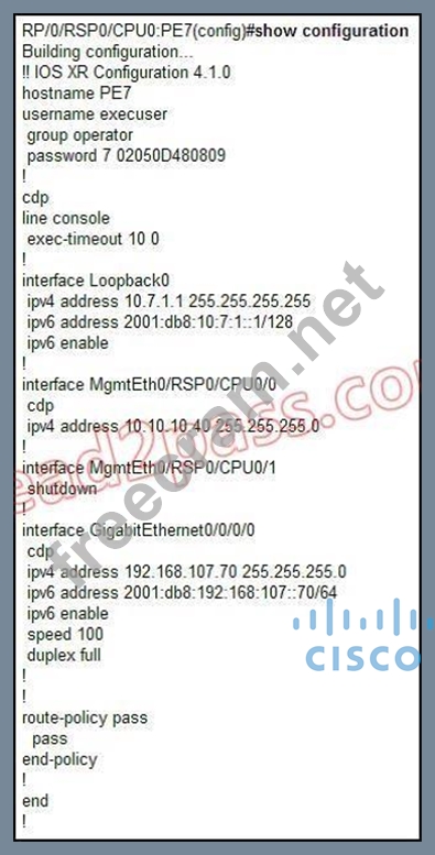 Question 10: Refer to the Cisco IOS XR configuration exhibit. Which state...