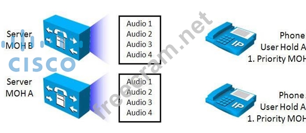 Phone A places Phone B on hold. Which two of these identify the audio stream that will be heard and from which server it will be played? (Choose two.)