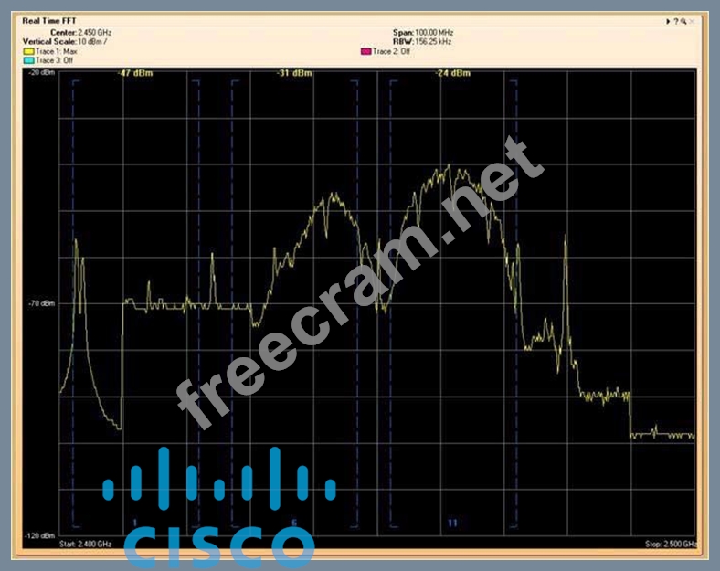 Refer to the exhibit. After performing a Layer 1 survey using Cisco Spectrum Expert, which result is indicated by the visual screen?