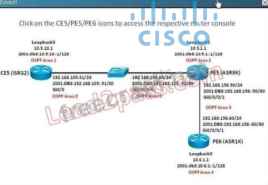 Question 40: (Exhibit) On the PE5 router, there are how many IPv4 and IPv...