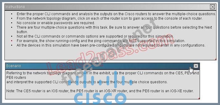 Question 33: (Exhibit) On the PE5 router, there are how many IPv4 and IPv...