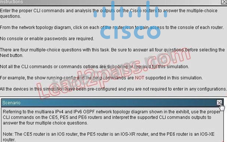 Question 33: (Exhibit) On the PE5 router, there are how many IPv4 and IPv...