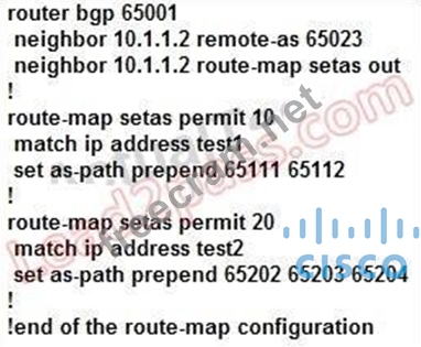 Question 12: Refer to the BGP and route map configurations exhibit. When ...