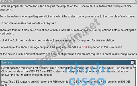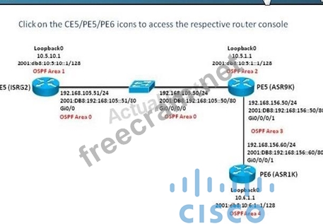 Question 25: (Exhibit) On the PE5 router, there are how many IPv4 and IPv...
