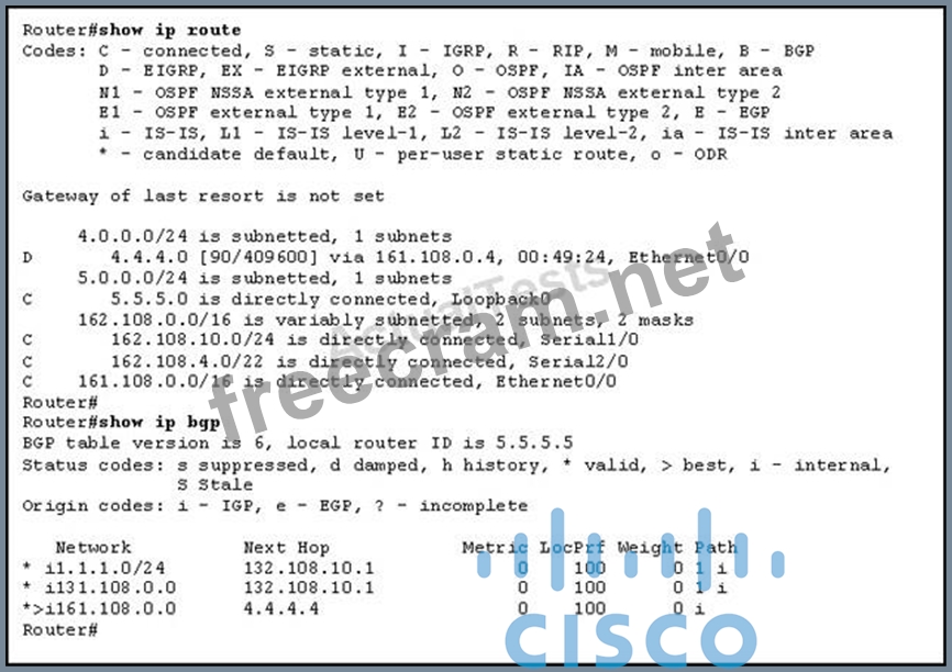 Question 41: When using the Cisco IOS-XR show bgp command to examine the ...