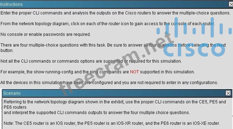 Question 12: (Exhibit) On the PE5 router, which statement is correct rega...