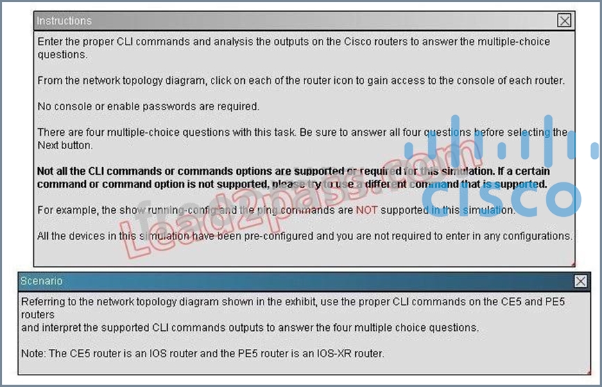 Question 6: Hotspot questions (Exhibit) On the PE5 router, which stateme...