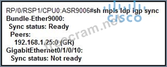 what are three possible reasons that the GigabitEthernet0/1/0/10 LDP IGP sync status is not ready? (Choose three.)