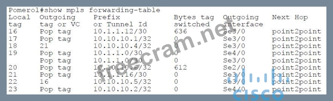 Corresponding entry in LFIB (LABEL <=> INTERFACE)