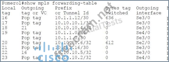 Corresponding entry in LFIB (LABEL <=> INTERFACE)
