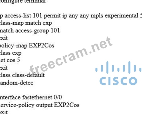 Question 62: Which method maps MPLS EXP bit 5 to COS 5 on Cisco IOS XE?...