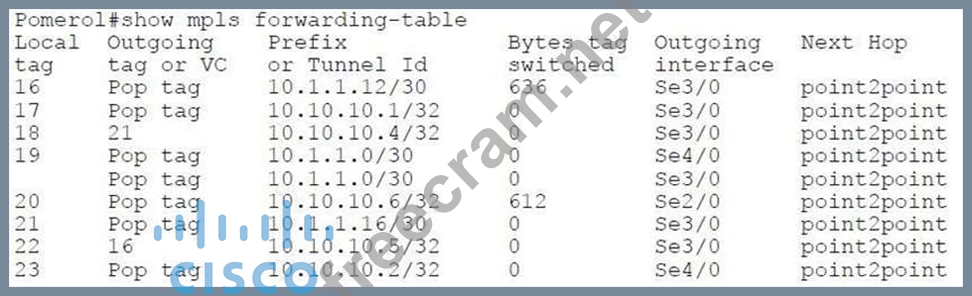 Corresponding entry in LFIB (LABEL <=> INTERFACE)