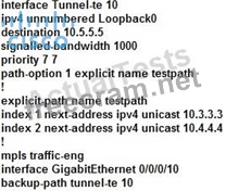 Question 39: When using the tunnel mpls traffic-eng path-option 1 explici...