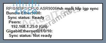 what are three possible reasons that the GigabitEthernet0/1/0/10 LDP IGP sync status is not ready?